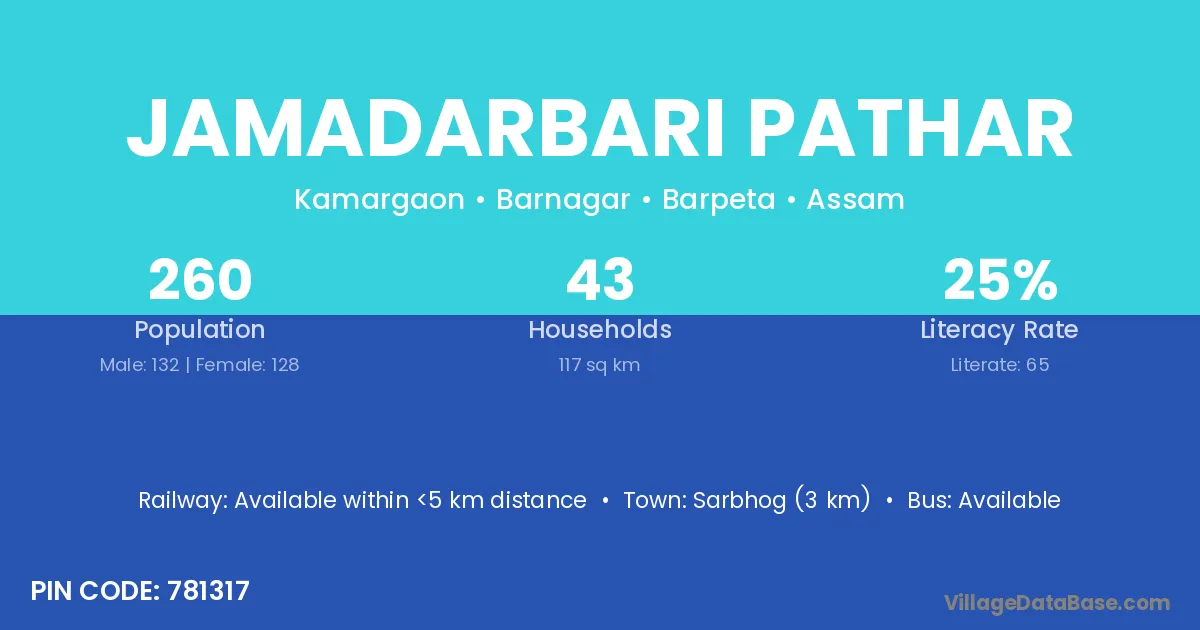 Jamadarbari Pathar village has a total population of 260 people, of which 132 are males and 128 are females.
