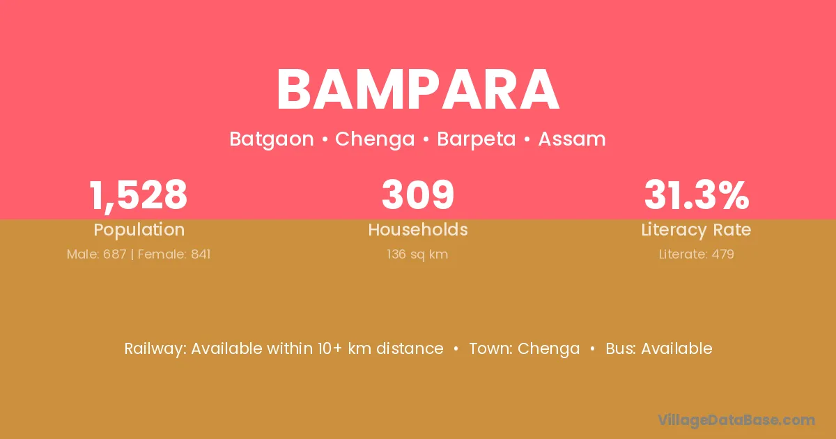 Bampara village has a total population of 1,528 people, of which 687 are males and 841 are females.