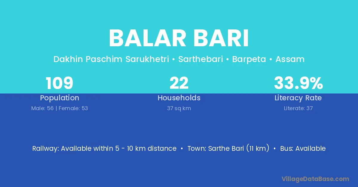 Sarthe Bari (11 km) is the nearest town to Balar Bari village for major economic activities and is located approximately 11 km away.