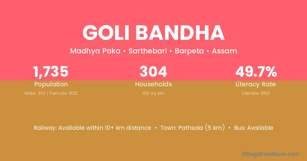 Pathsala (5 km) is the nearest town to Goli Bandha village for major economic activities and is located approximately 5 km away.