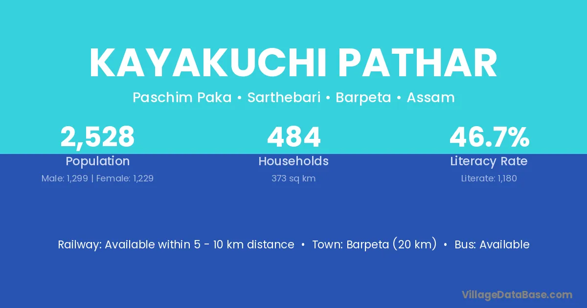 Barpeta (20 km) is the nearest town to Kayakuchi Pathar village for major economic activities and is located approximately 20 km away.
