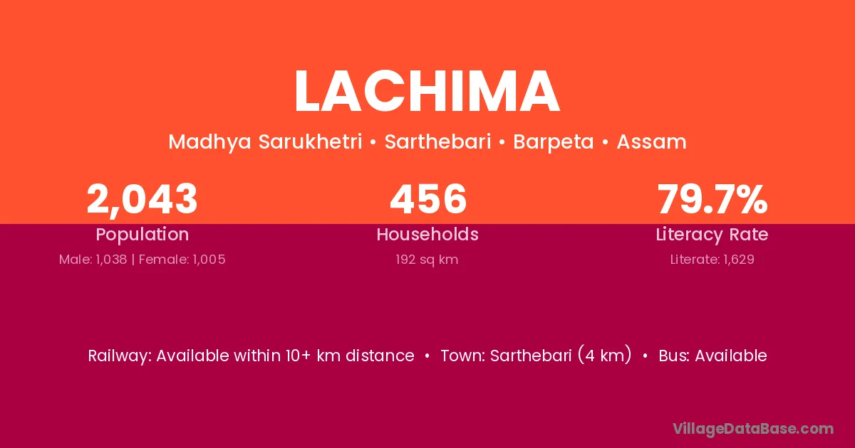 Sarthebari (4 km) is the nearest town to Lachima village for major economic activities and is located approximately 4 km away.