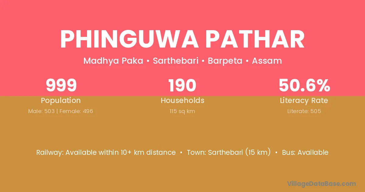 Sarthebari (15 km) is the nearest town to Phinguwa Pathar village for major economic activities and is located approximately 15 km away.