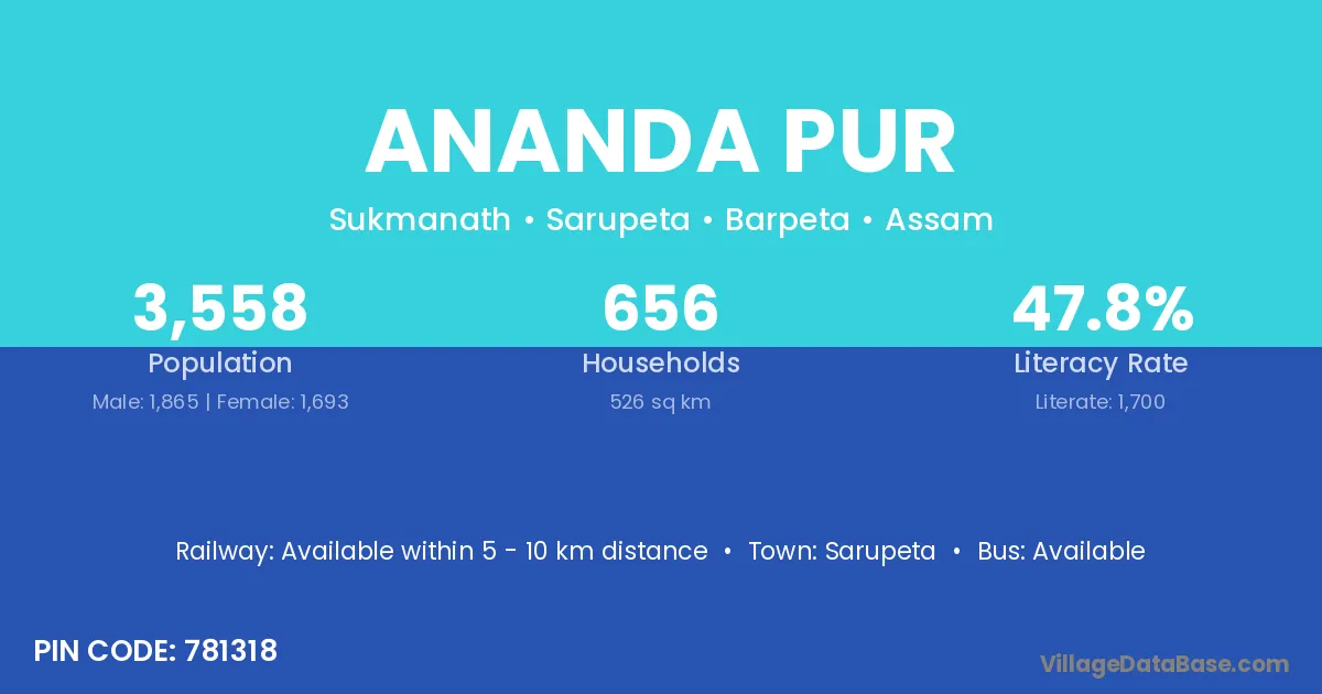 Sarupeta is the nearest town to Ananda Pur village for major economic activities