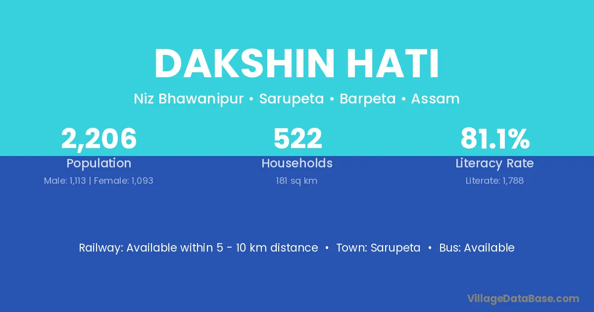 Sarupeta is the nearest town to Dakshin Hati village for major economic activities