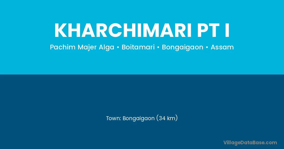 Bongaigaon (34 km) is the nearest town to Kharchimari Pt I village for major economic activities and is located approximately 34 km away.