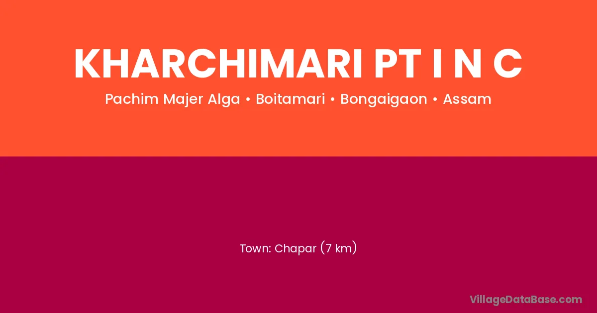 Chapar (7 km) is the nearest town to Kharchimari Pt I N C village for major economic activities and is located approximately 7 km away.