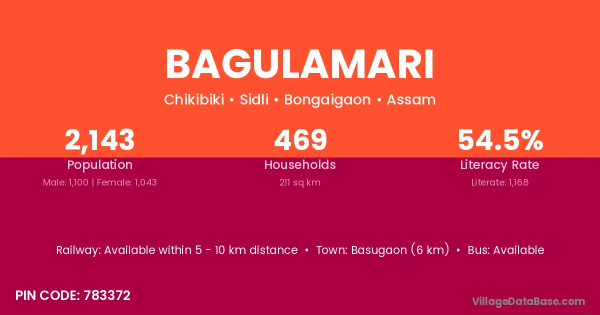 Basugaon (6 km) is the nearest town to Bagulamari village for major economic activities and is located approximately 6 km away.