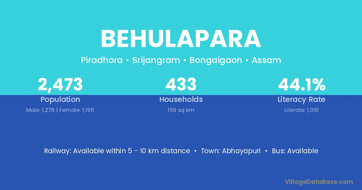 Abhayapuri is the nearest town to Behulapara village for major economic activities