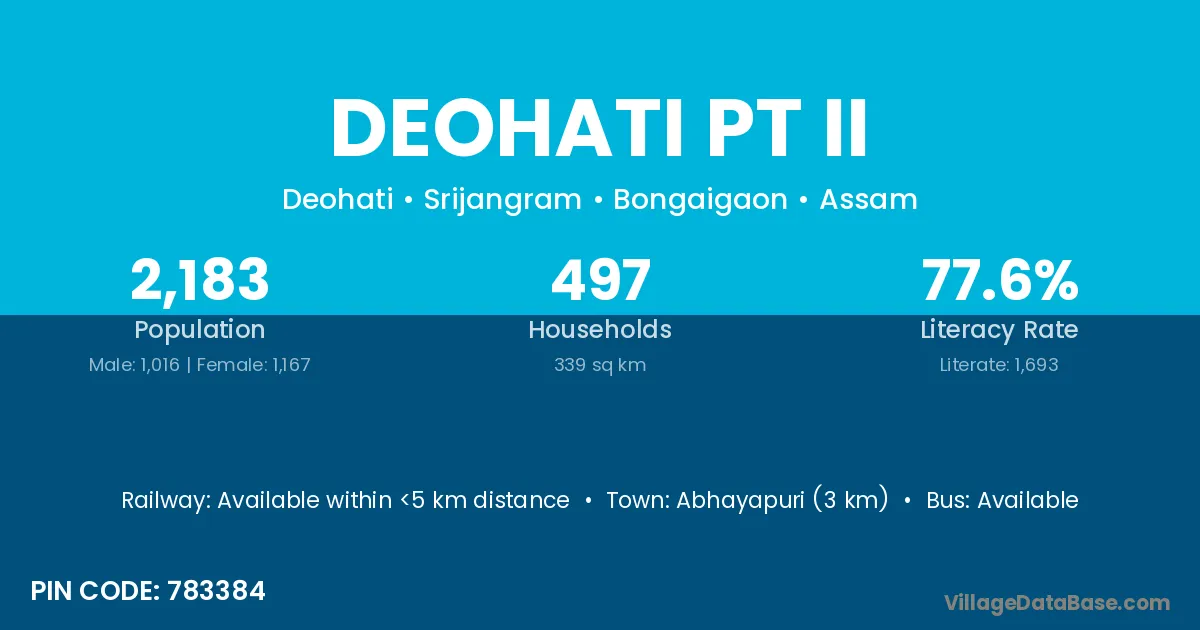 Abhayapuri (3 km) is the nearest town to Deohati Pt Ii village for major economic activities and is located approximately 3 km away.