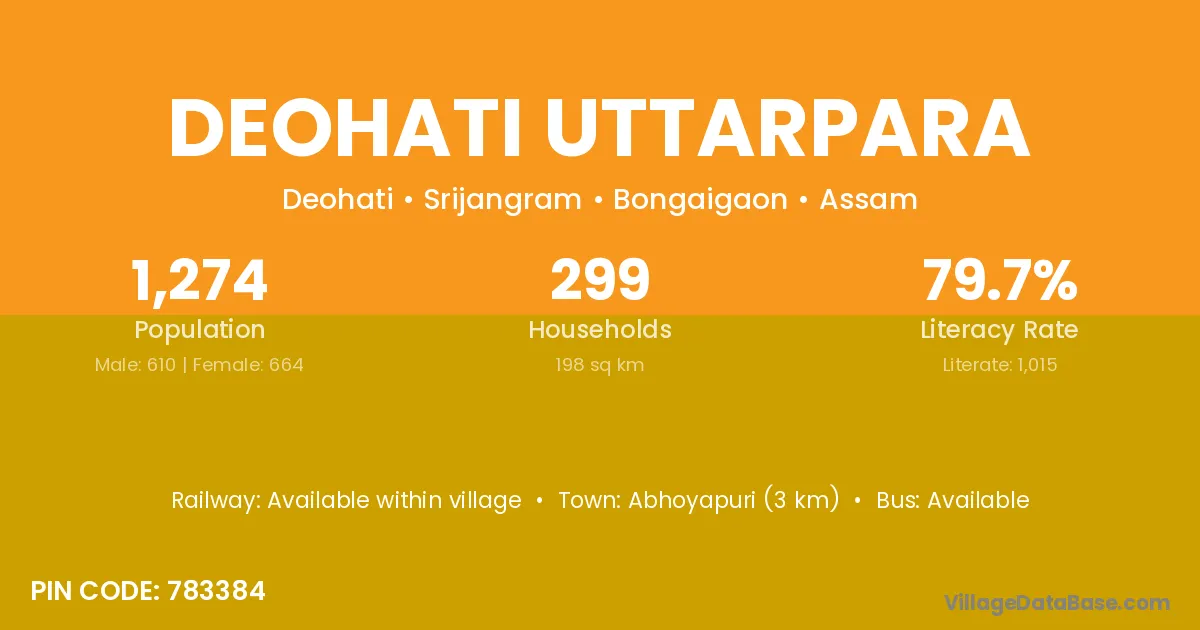 Abhoyapuri (3 km) is the nearest town to Deohati Uttarpara village for major economic activities and is located approximately 3 km away.