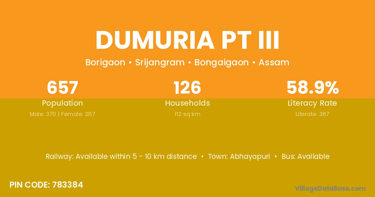 Abhayapuri is the nearest town to Dumuria Pt Iii village for major economic activities