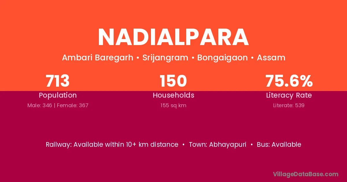 Abhayapuri is the nearest town to Nadialpara village for major economic activities