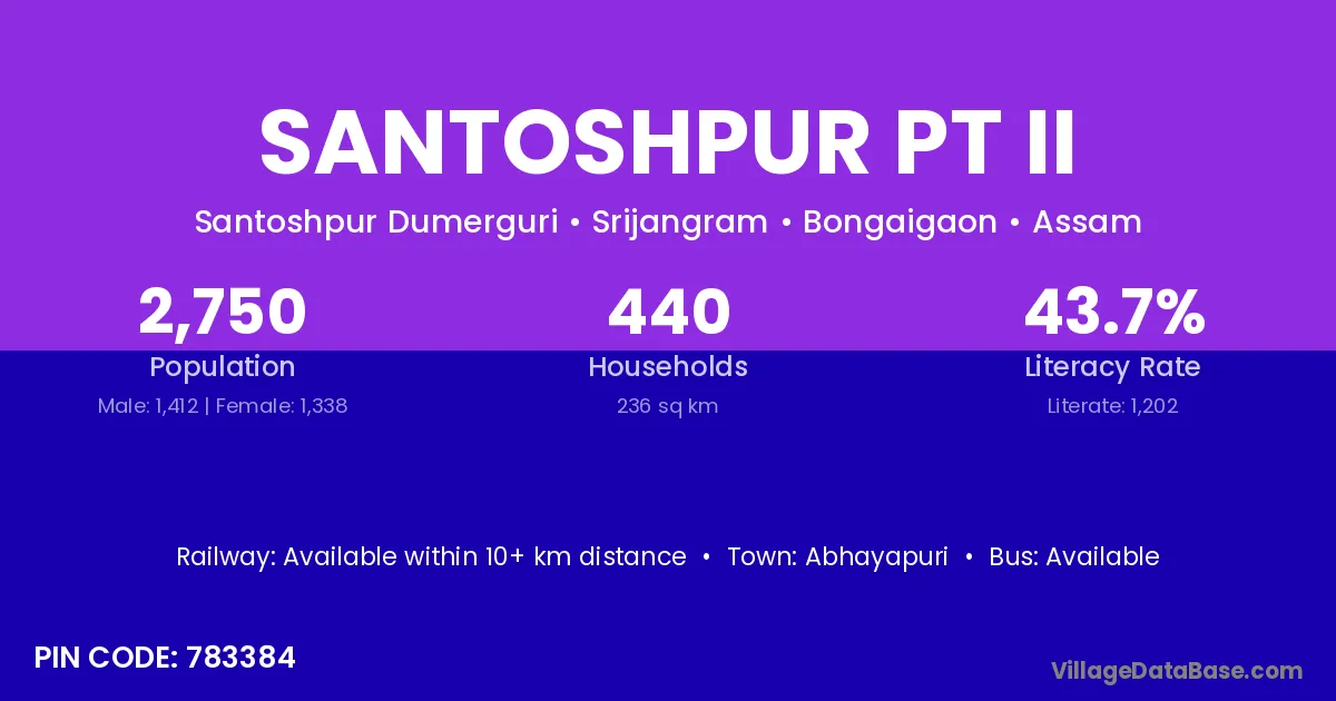 Abhayapuri is the nearest town to Santoshpur Pt Ii village for major economic activities