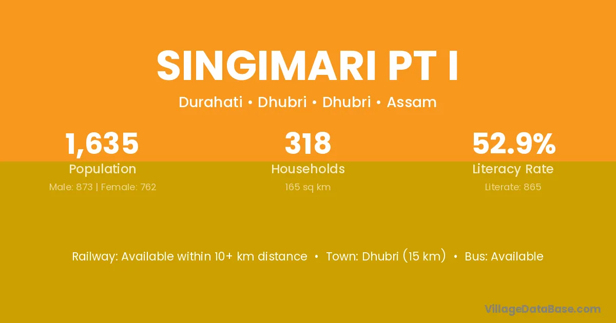 Abhayapuri (6 km) is the nearest town to Singimari Pt I village for major economic activities and is located approximately 6 km away.
