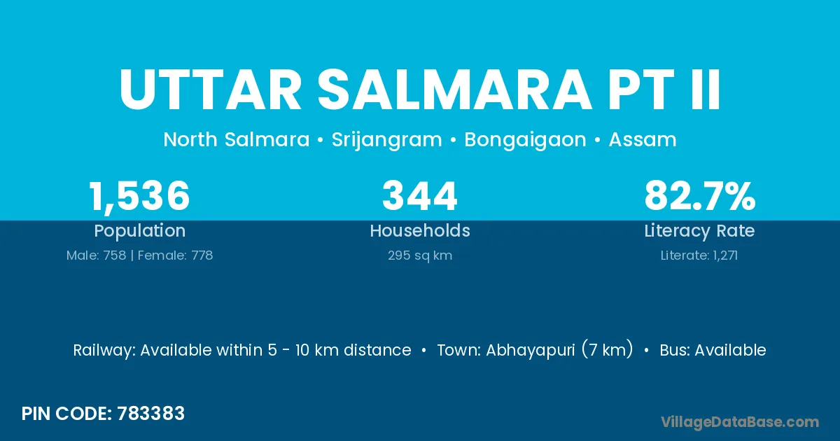 Abhayapuri (7 km) is the nearest town to Uttar Salmara Pt Ii village for major economic activities and is located approximately 7 km away.