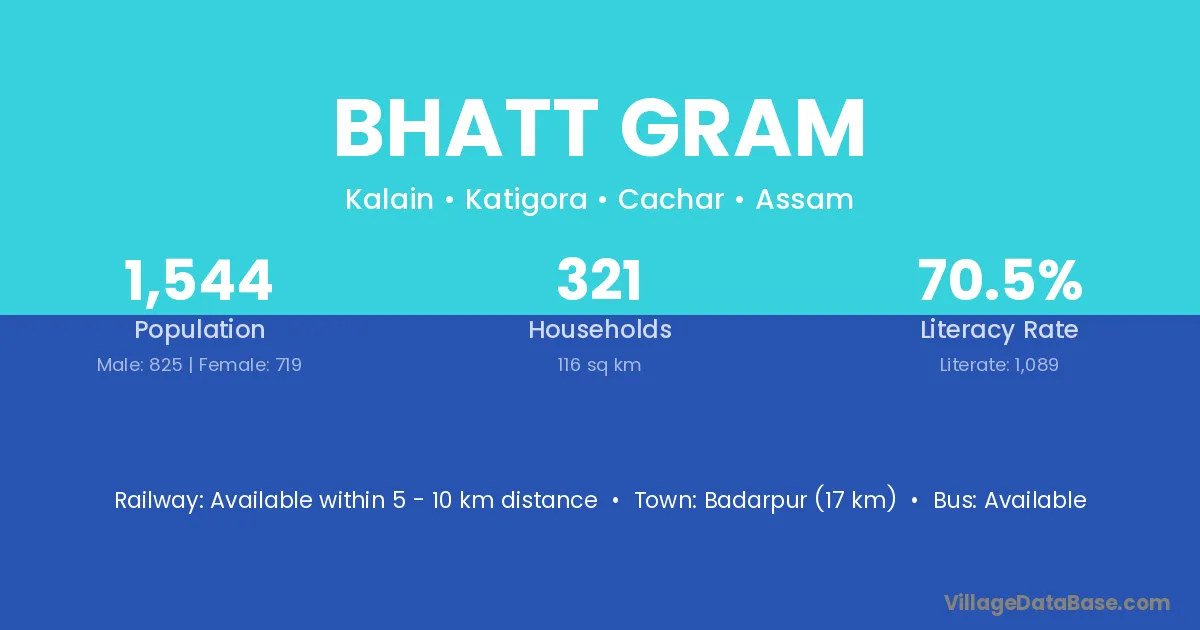 Badarpur (17 km) is the nearest town to Bhatt Gram village for major economic activities and is located approximately 17 km away.