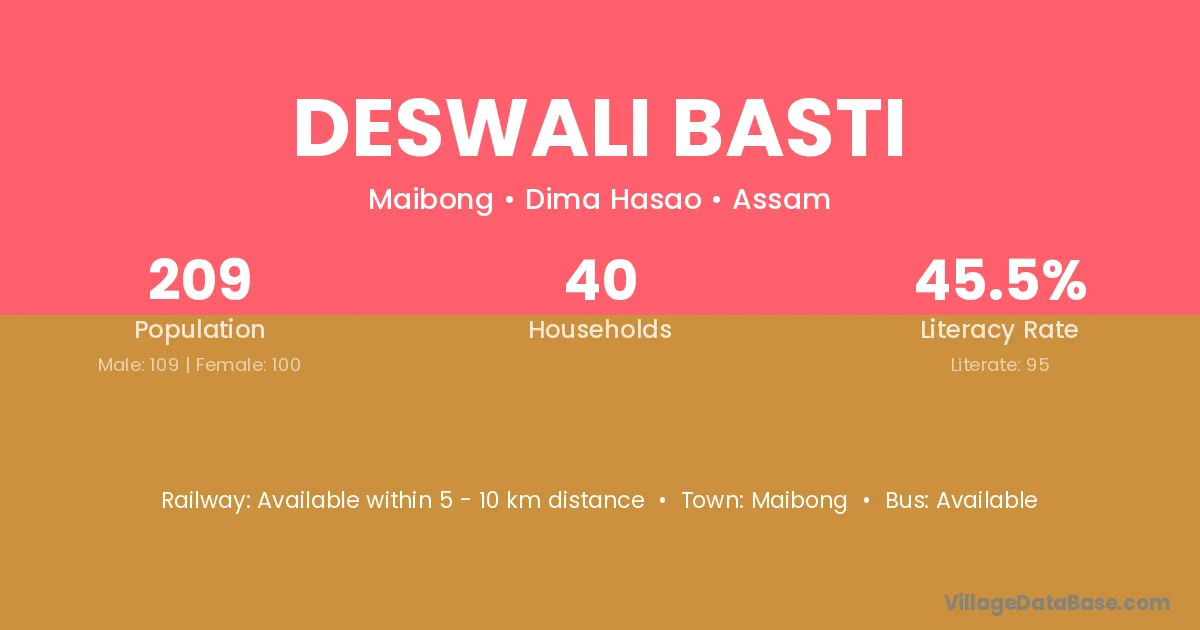 Silchar (50 km) is the nearest town to Deswali Basti village for major economic activities and is located approximately 50 km away.
