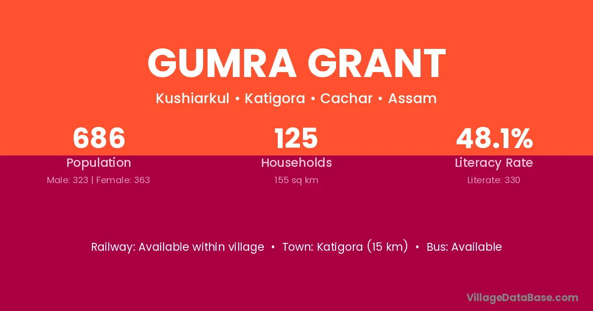 Gumra Grant village is located in the Katigora Subdivision of the Cachar district in Assam .