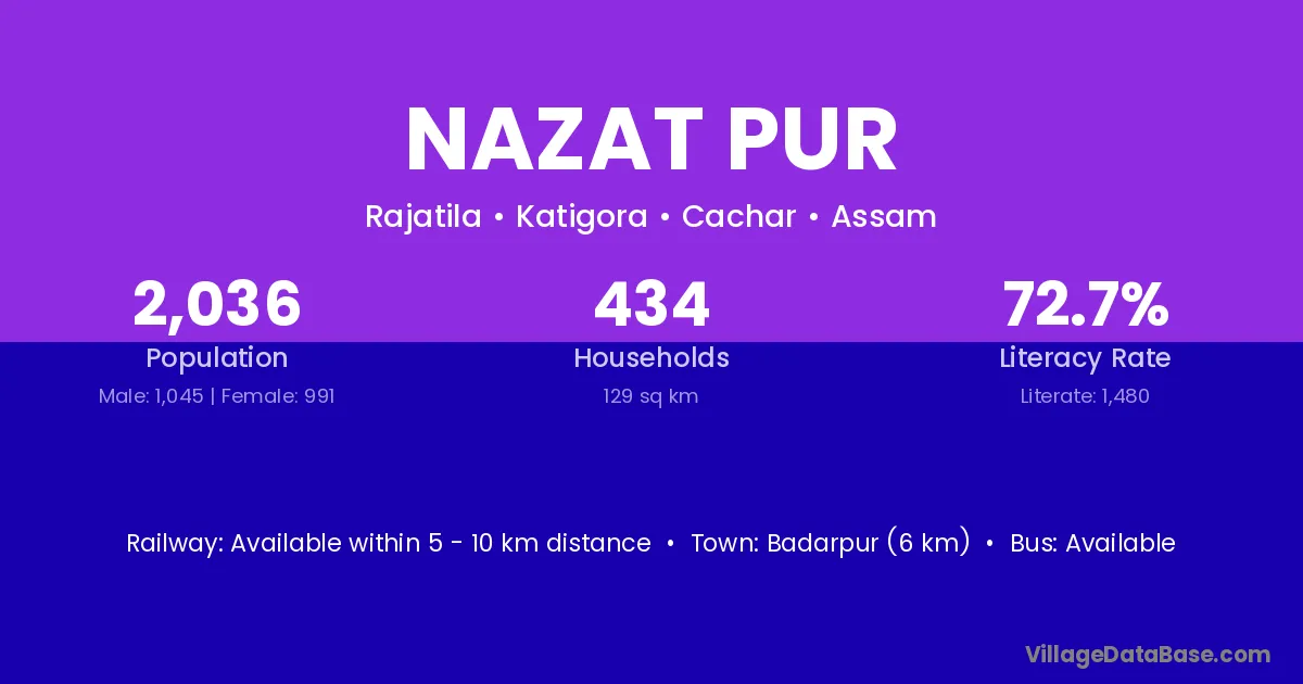 Badarpur (6 km) is the nearest town to Nazat Pur village for major economic activities and is located approximately 6 km away.