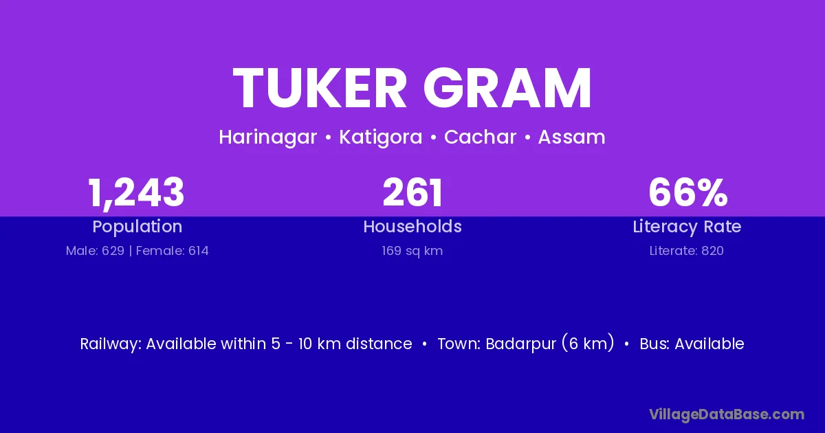Badarpur (6 km) is the nearest town to Tuker Gram village for major economic activities and is located approximately 6 km away.