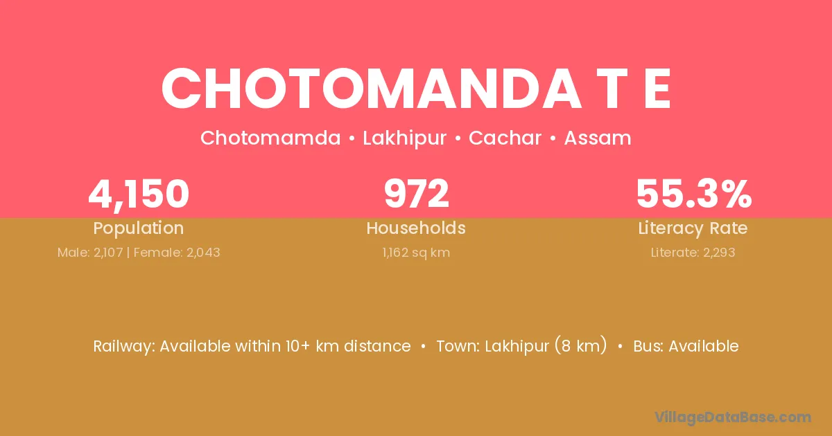 Lakhipur (8 km) is the nearest town to Chotomanda T E village for major economic activities and is located approximately 8 km away.