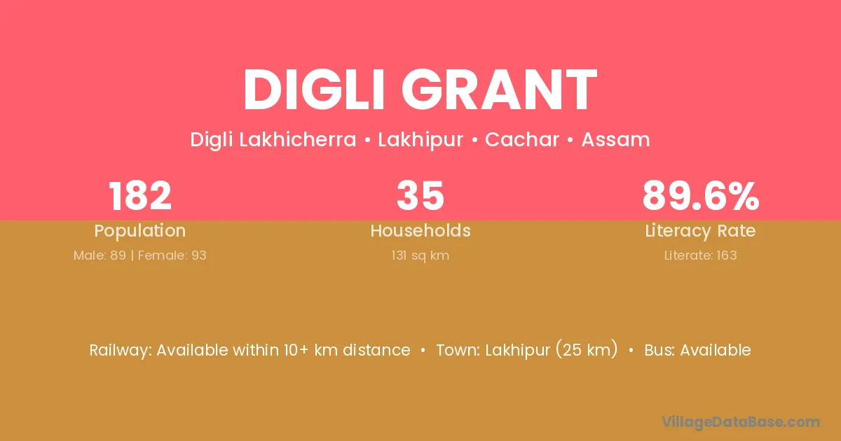 Lakhipur (25 km) is the nearest town to Digli Grant village for major economic activities and is located approximately 25 km away.