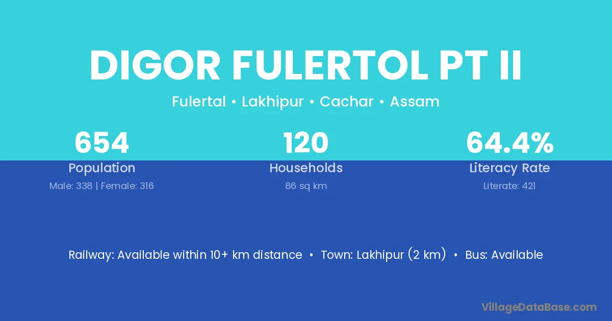 Lakhipur (2 km) is the nearest town to Digor Fulertol Pt Ii village for major economic activities and is located approximately 2 km away.