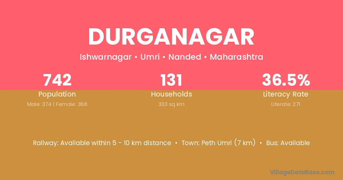 The literacy rate of Durganagar village is 34.34%. Male literacy stands at 40.05% and female literacy at 27.91%.