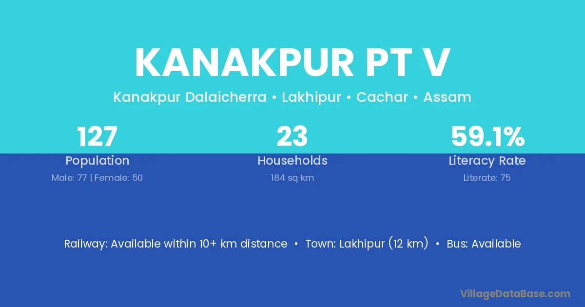 Kanakpur Pt V village has a total population of 127 people, of which 77 are males and 50 are females.