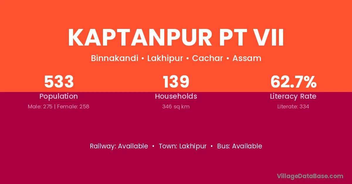 Lakhipur is the nearest town to Kaptanpur Pt Vii village for major economic activities