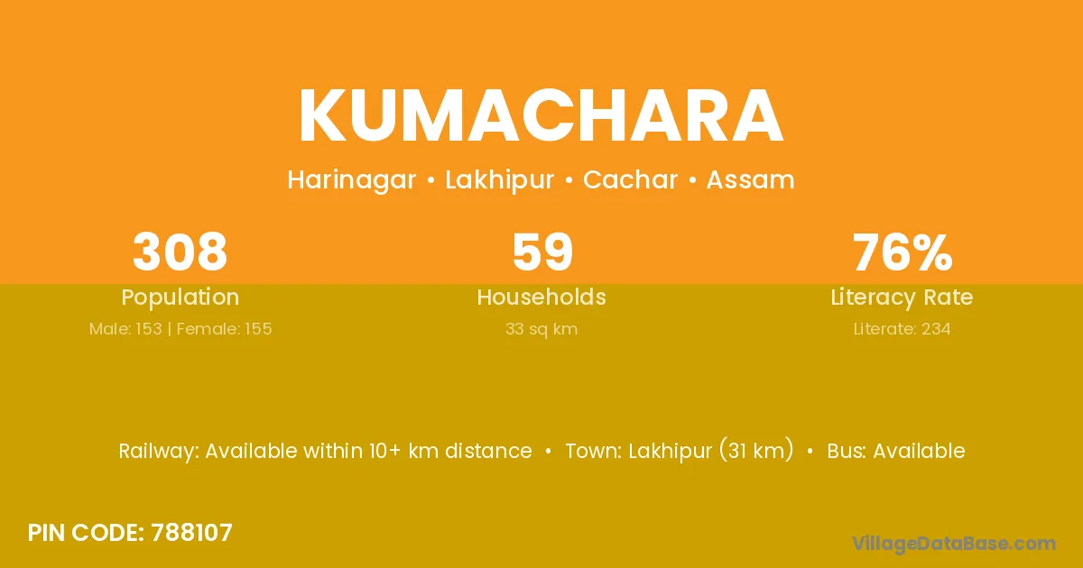 Lakhipur (31 km) is the nearest town to Kumachara village for major economic activities and is located approximately 31 km away.