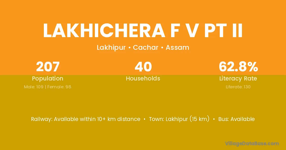 Lakhichera F V Pt Ii village has a total population of 207 people, of which 109 are males and 98 are females.
