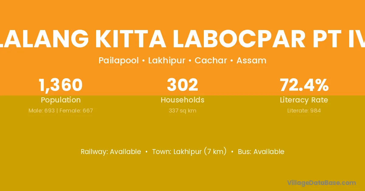 Lalang Kitta Labocpar Pt Iv village has a total population of 1,360 people, of which 693 are males and 667 are females.