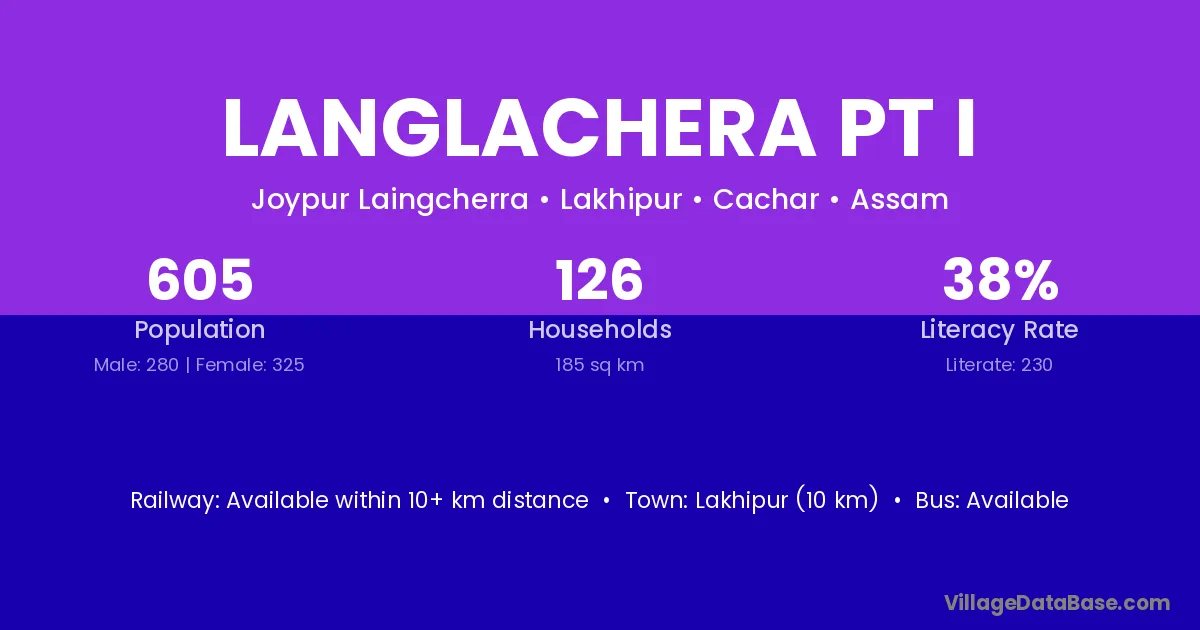 Lakhipur (10 km) is the nearest town to Langlachera Pt I village for major economic activities and is located approximately 10 km away.