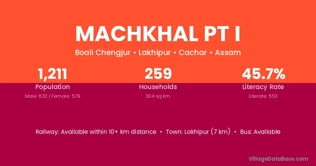 Lakhipur (7 km) is the nearest town to Machkhal Pt I village for major economic activities and is located approximately 7 km away.