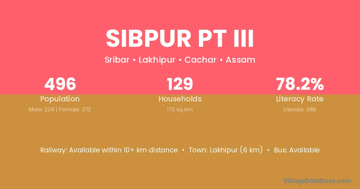 Sibpur Pt Iii village has a total population of 496 people, of which 224 are males and 272 are females.