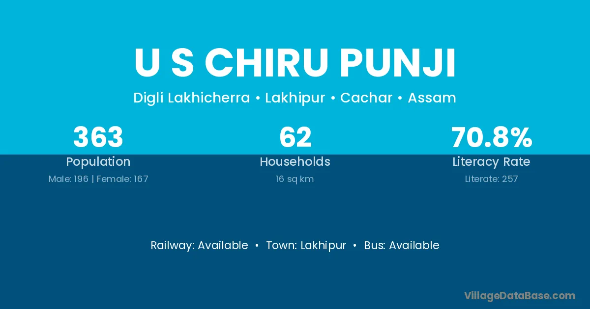 Lakhipur is the nearest town to U S Chiru Punji village for major economic activities