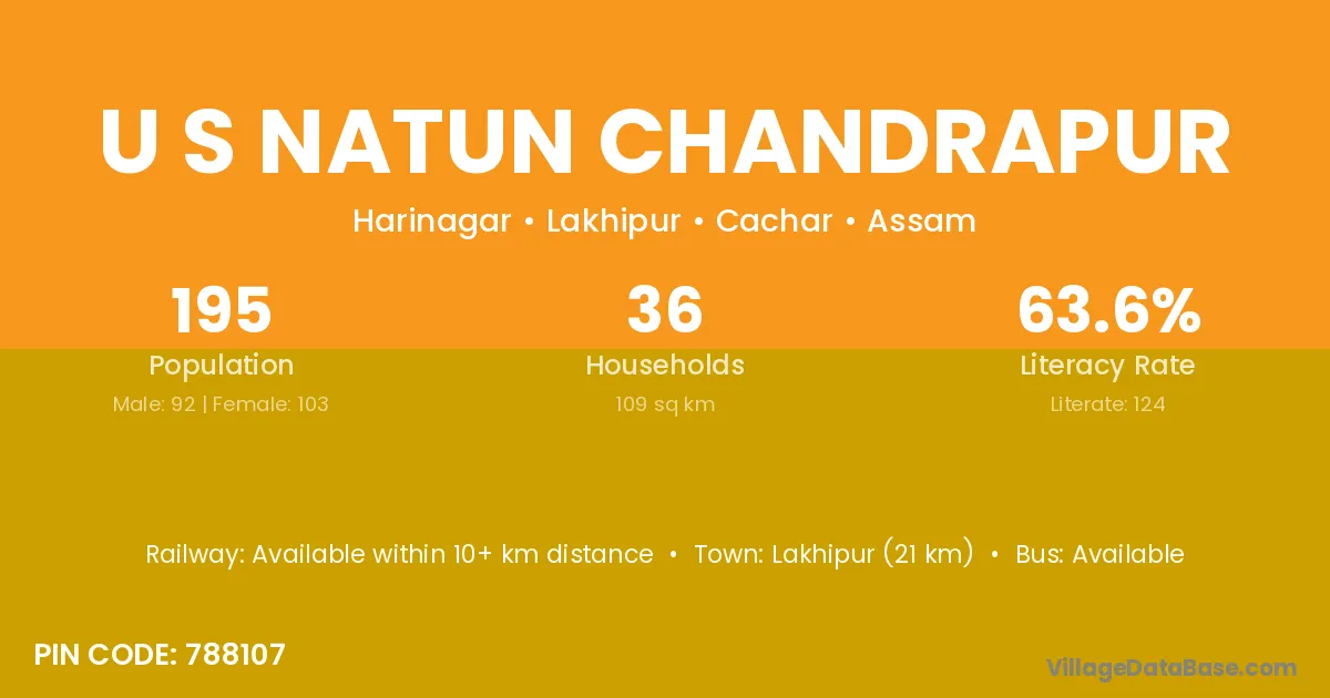 U S Natun Chandrapur village has a total population of 195 people, of which 92 are males and 103 are females.