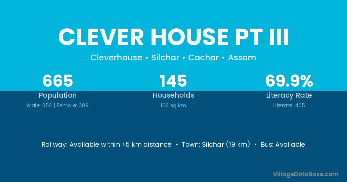Silchar (19 km) is the nearest town to Clever House Pt Iii village for major economic activities and is located approximately 19 km away.