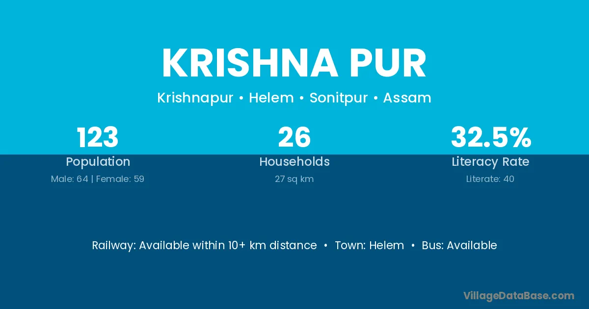Silchar (14 km) is the nearest town to Krishna Pur village for major economic activities and is located approximately 14 km away.