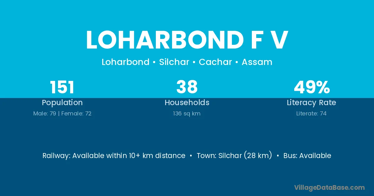 Silchar (28 km) is the nearest town to Loharbond F V village for major economic activities and is located approximately 28 km away.