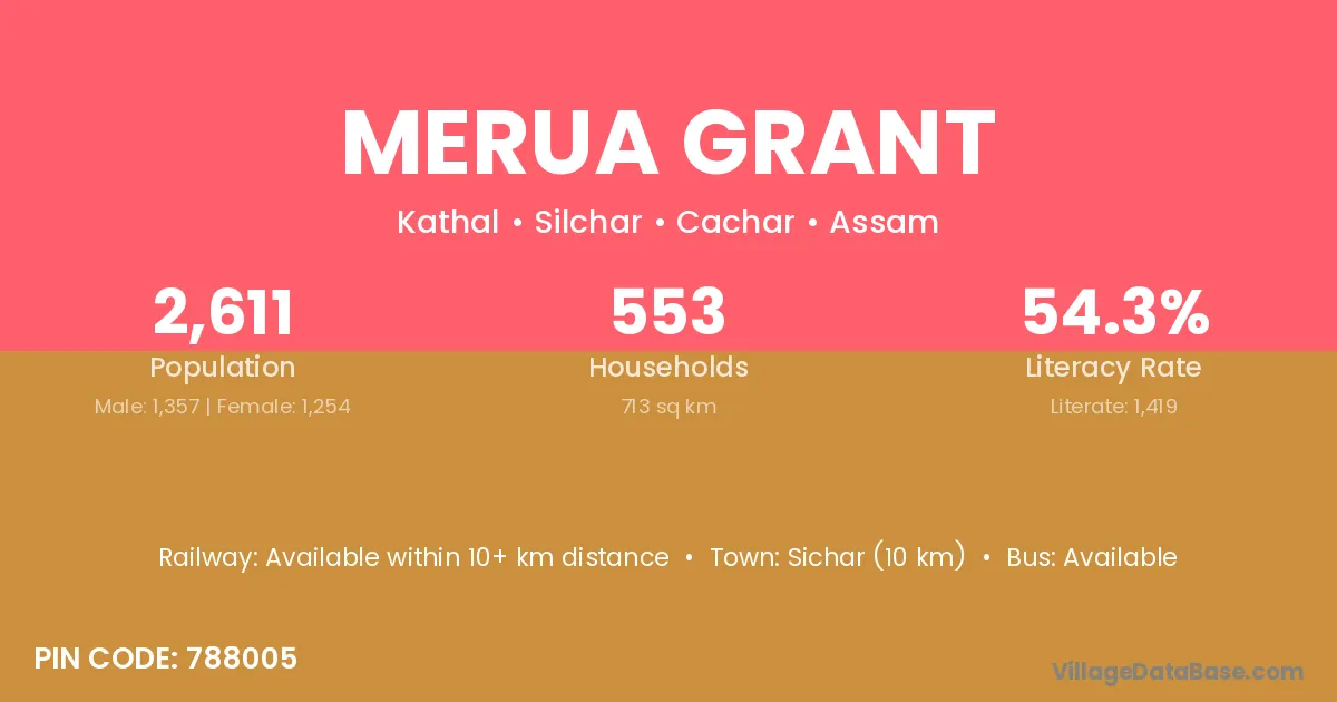 Merua Grant village is located in the Silchar Subdivision of the Cachar district in Assam .