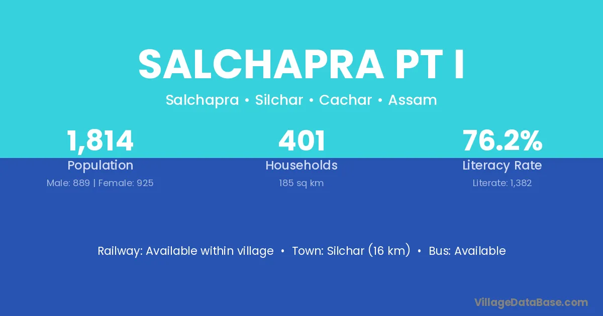 Silchar (16 km) is the nearest town to Salchapra Pt I village for major economic activities and is located approximately 16 km away.