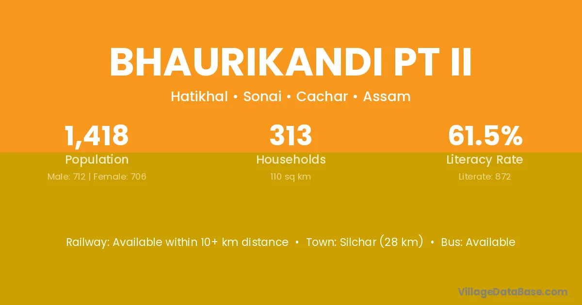 Silchar (28 km) is the nearest town to Bhaurikandi Pt Ii village for major economic activities and is located approximately 28 km away.