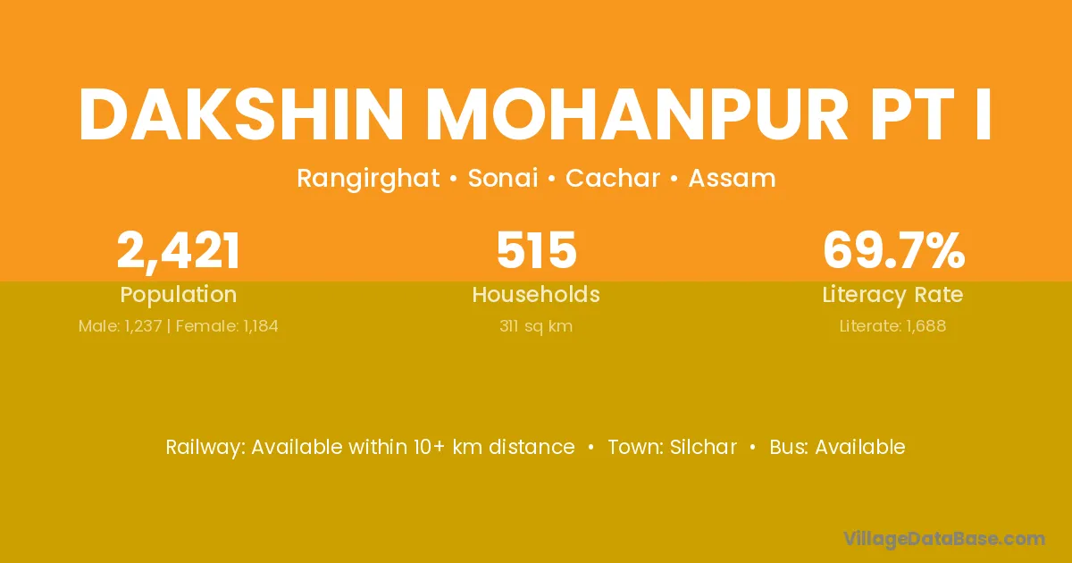 Silchar is the nearest town to Dakshin Mohanpur Pt I village for major economic activities