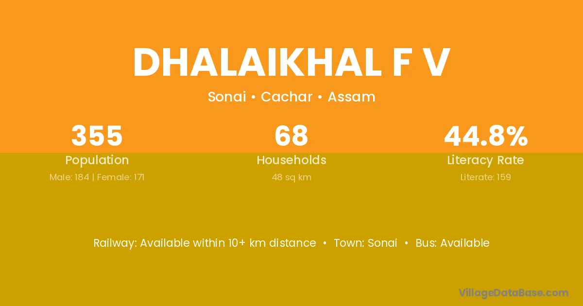 Dhalaikhal F V village has a total population of 355 people, of which 184 are males and 171 are females.