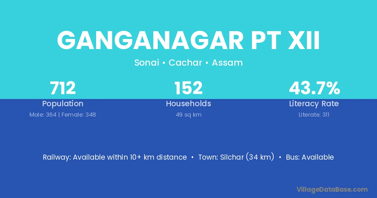 Silchar (34 km) is the nearest town to Ganganagar Pt Xii village for major economic activities and is located approximately 34 km away.