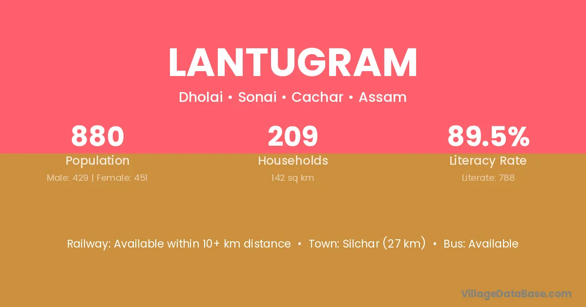 Silchar (27 km) is the nearest town to Lantugram village for major economic activities and is located approximately 27 km away.