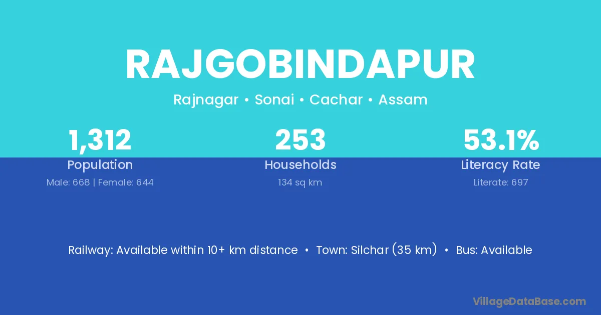 Silchar (35 km) is the nearest town to Rajgobindapur village for major economic activities and is located approximately 35 km away.